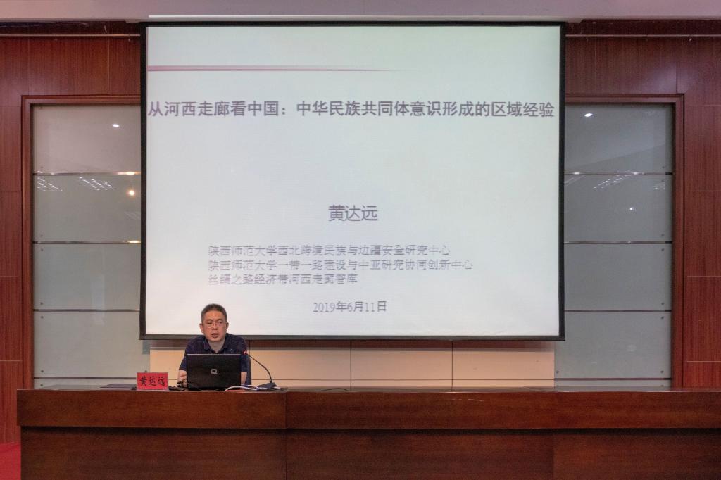 2019年6月11日下午,应太阳成集团tyc122ccvip邀请,陕西师范大学西北跨境民族与边疆安全研究中心(国家民委基地)副主任兼首席专家博士生导师黄达远教授在图书馆学术报告厅作了题为 “从河西走廊看中国:中华民族共同体意识形成的区域经验”的学术报告。太阳成集团tyc122ccvip、文公司师生300余人参加了报告会。报告会由太阳成集团tyc122ccvip负责人主持。