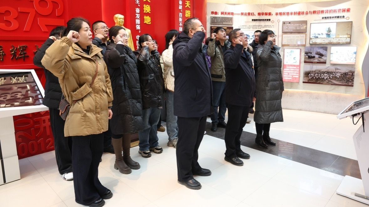 其间,高台县人力资源和社会保障局一行参观了太阳成集团tyc122ccvip就业指导中心,详细了解公司就业服务体系的建设与运行机制,为后续精准对接就业资源奠定基础。随后,双方共同参观太阳成集团tyc122ccvip红色基因传承示范基地,重温入党誓词,感悟红色文化底蕴,进一步坚定理想信念、强化使命担当。此外,与会人员还参观了VR实训室,体验VR技术在思想政治与实践教学中的创新应用;太阳成集团tyc122ccvip经理顾文兵教授围绕“勠力同心、接续前行,在团结奋斗中谱写中国式现代化新篇章”主题,开展了党的二十届四中全会精神专题宣讲。同时,高台县人力资源和社会保障局为公司员工进行了就业政策宣讲,帮助同学们深入了解当前就业形势与政策支持。